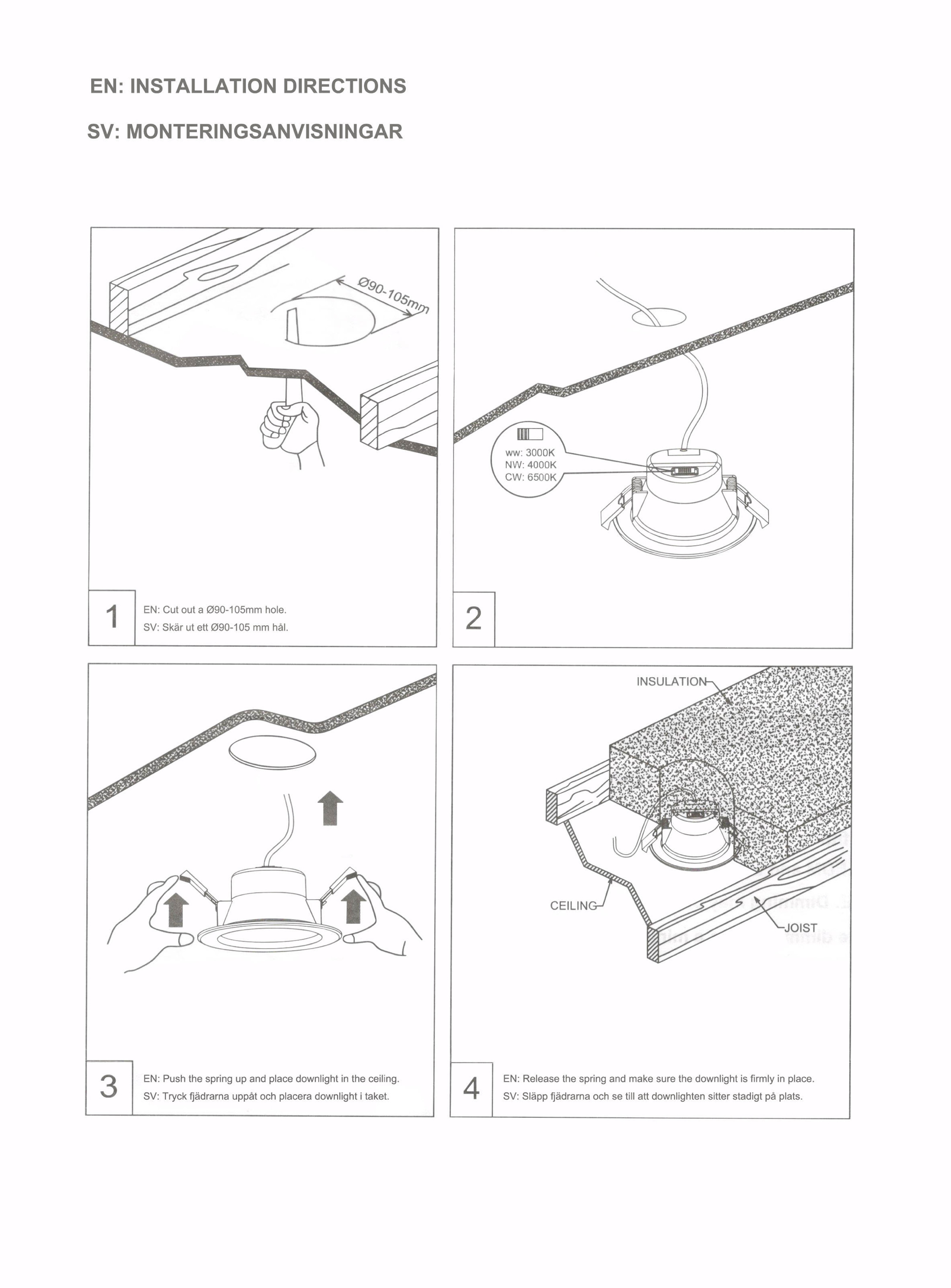 Du kan själv välja vilken färgtemperatur du önskar – 3000K, 4000K eller 6500K. Detta val gör du innan montering med dip switchar som sitter på armaturen.